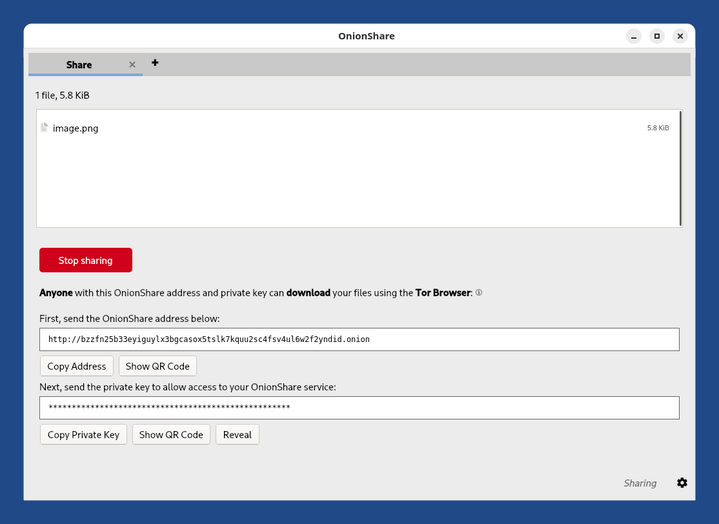 OnionShare utilizza indirizzi onion diversi ogni volta.